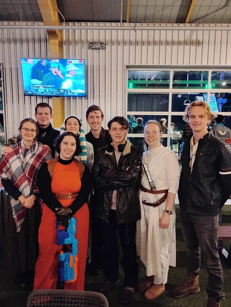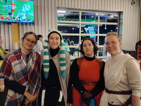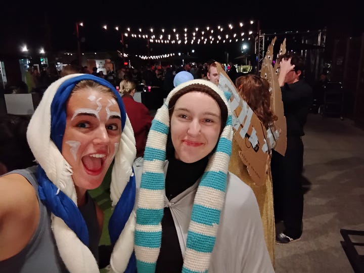 Kilter was the 31st, at TopGolf. We had a fairly large group that went. It consisted of Elijah and Caroline (the vibes of Doctor Who), Elizabeth and Tristan (Rocket and Starlord), Stephen and Kaitlyn (Obi wan and young Anakin), Emily and Justus (Rey and Poe Dameron), and Shiloh and I (Anakin and Ahsoka). There were so many friends there, it was so much better than last year’s, though the zoo was fun. It was also a very late night as the dance didn’t end until midnight. But we all had a great time!