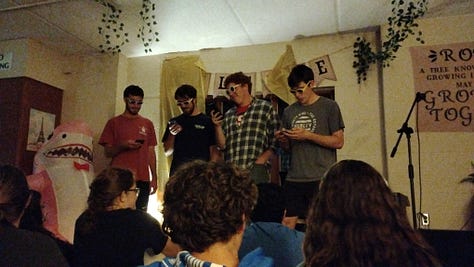 October 4th, Elizabeth, her brother David, and I auditioned for Mountain Affair, Covenant’s campus-wide talent show of sorts. We performed a fun version of Imagine Dragon’s Warriors. Elizabeth and I traded off singing the verses and the two parts of the chorus, ending with the both of us singing the final chorus. David accompanied us on the keyboard, which he put in the harpsichord setting. It was terrifying but thrilling at the same time. We did not end up getting a spot in this year’s Mountain Affair (which we found out the week after), but we did perform the song again that night at Open Rowan, but this time without the harpsichord setting as their keyboard didn’t have one. That was also fun, and the people liked it a lot. I’m glad we auditioned and performed at Open Rowan!