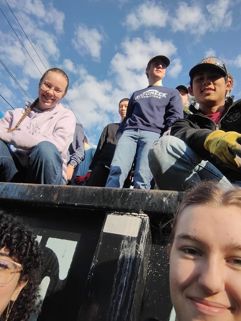The morning of October 11th, Emily and I went and helped out the Walker County Code Enforcement Department with a service project along with at least 25 other Covenant students and a professor. It was a long two hours, a lot of work - the situation was sad and there were some risks (the officer was armed and alert; there were some places he told us to stay far away from) - but it felt good to work with our hands, even in the filth, to help out the community and hopefully help these people get a leg up and to start fresh. I’ve never really had the opportunity to do that sort of service project before, so I was very grateful for the experience. And it was a great time of bonding between my roommate and I as well as the whole group, including some of my Grounds coworkers. I see people differently now, which was the point of the experience; I have found myself to be slower to jumping to conclusions when I see run down places or people who look to be in desperate situations. I still don’t have the right tools to help them, but now I actually want to, and it hurts that I don’t know how to.