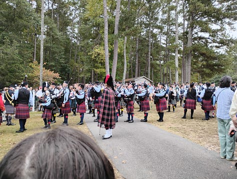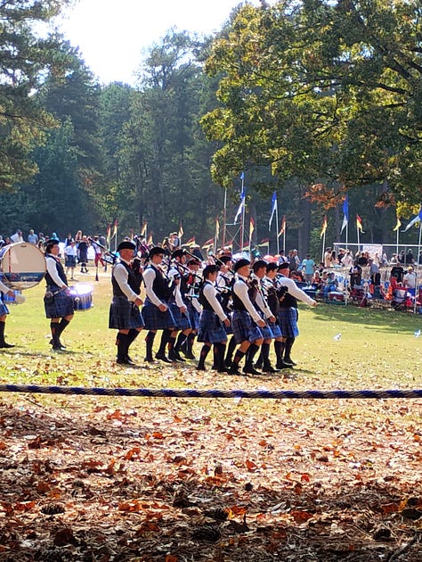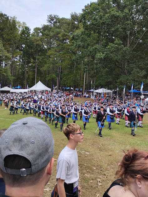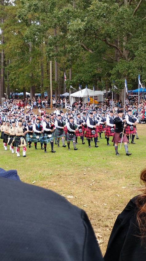 4pm, October 17th, was the start of my Fall Break. Elizabeth and her brothers and I drove down to my house where the boys dropped us off and then went home. Elizabeth spent the weekend at my house, it was fun! Us and my family (minus my dad and middle sister) went to the Stone Mountain Highland Games on the 18th and were joined by Caroline, Elijah, and Shiloh. We spent a couple of hours there, exploring the different Scottish things there, listening and watching the pipes and drums corps, and Scottish dancing (done by some friends of my family). We got to see two of Covenant’s pipers perform with the Chattanooga Pipes and Drums Corp. They ended up getting second places overall, which is really exciting.